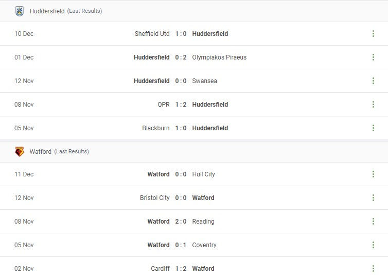 Huddersfield have scored 2 goals in the last 5 matches and conceded 5 goals.